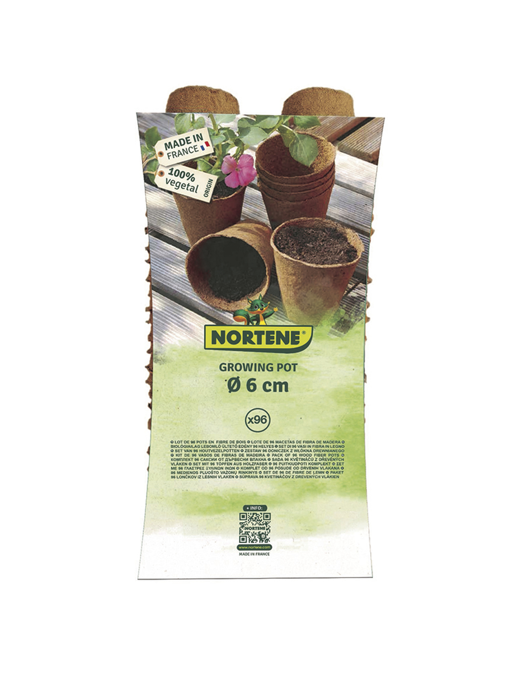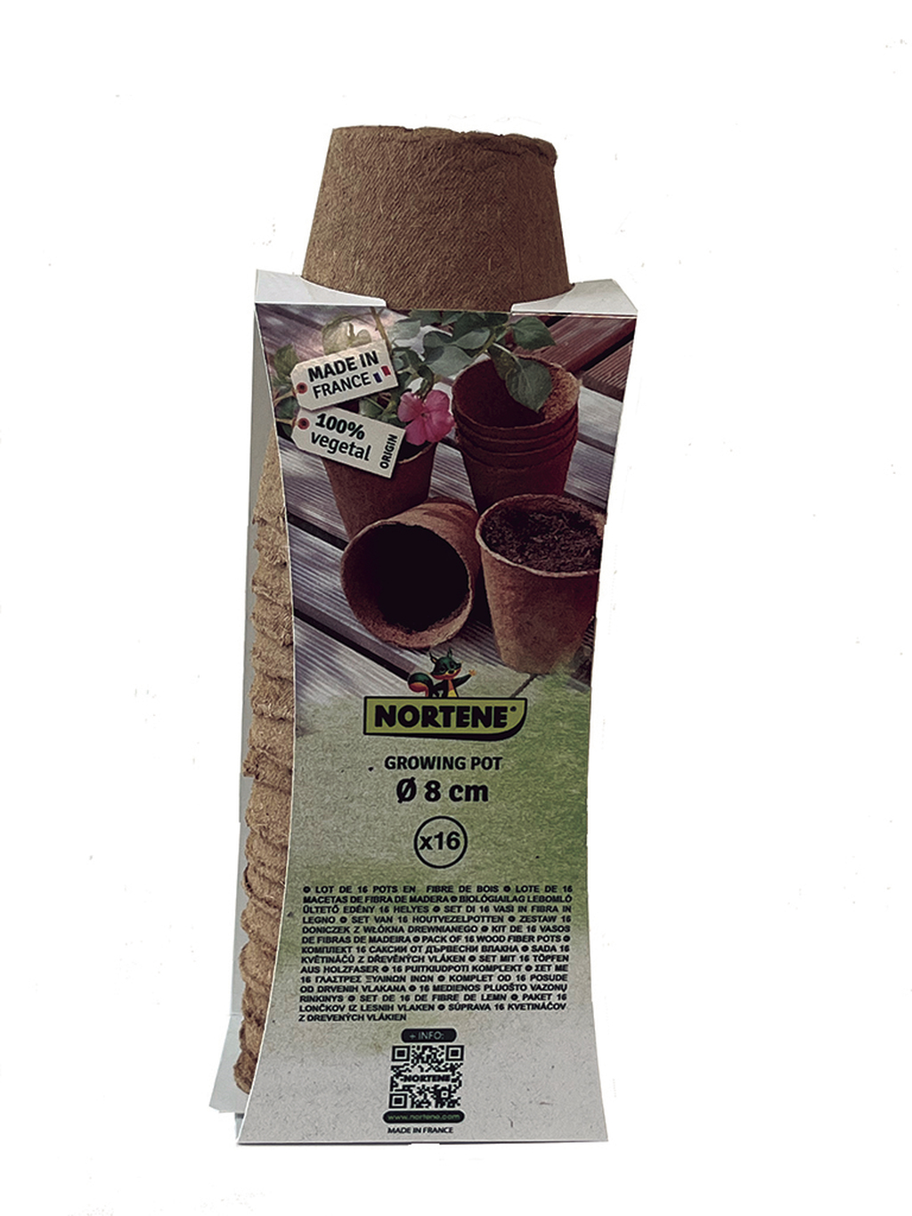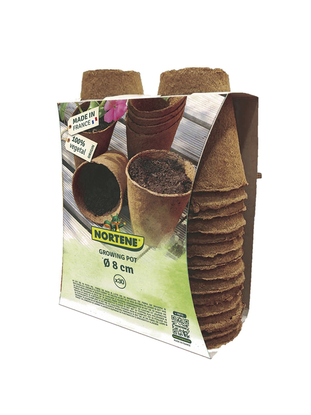 100% compostable. En el caso de trasplante de la planta en otro soporte mayor, no es necesario quitar esta maceta, se puede plantar directamente aunque previamente se debe haber sumergido la maceta en agua.